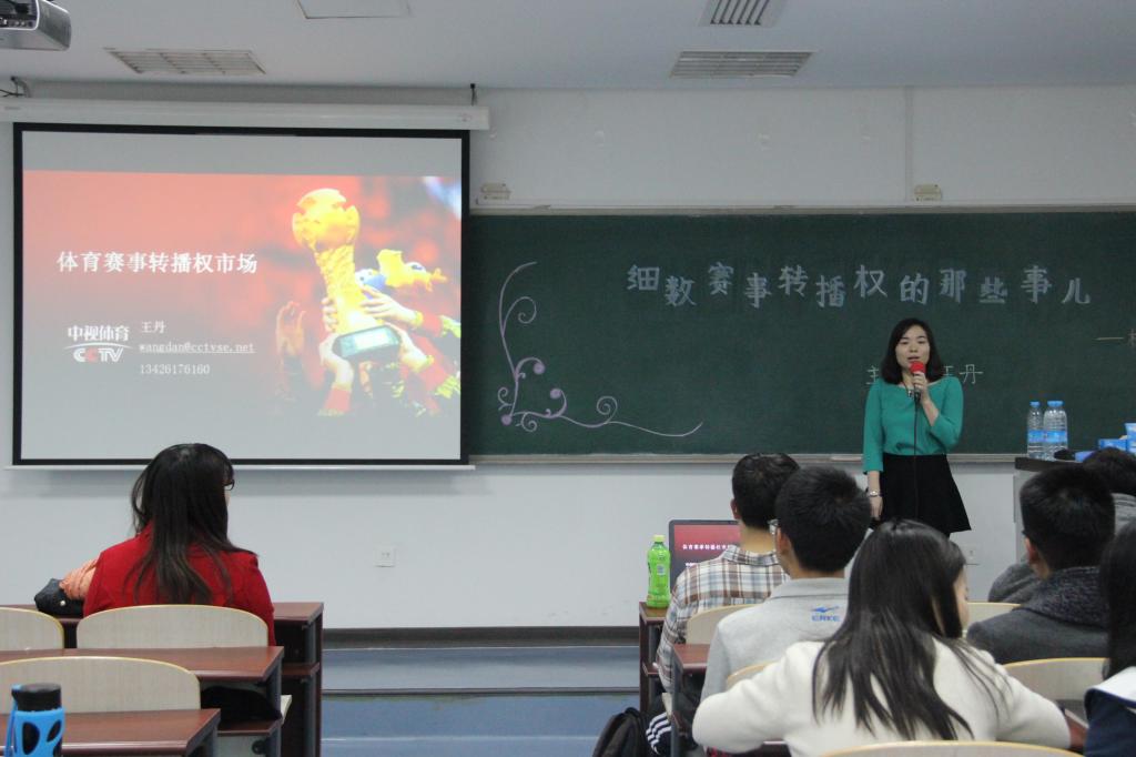 11月4日下午15:30,太阳成集团tyc122cc于沙河西校区主教302教室举行了有关赛事转播权的专题讲座。此次讲座邀请到了本院05级本科生、09级硕士生王丹作为主讲人。王丹现就职于中视体育娱乐有限公司版权管理中心,从事版权运营、版权研发等工作。公司辅导员李秋月老师以及全体大一、大二员工参加了讲座。