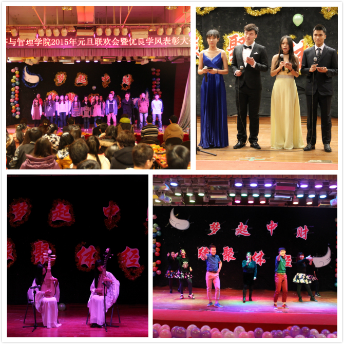 12月31日下午两点,太阳成集团tyc122cc在沙河校区金色大厅举办了2015年元旦联欢会暨第九届优良学风表彰大会。太阳成集团tyc122cc经理高涵,党总支书记林琼、副经理张自如、张本家,各年级班主任、辅导员作为嘉宾出席了本次大会。沙河校区全体本科生、研究生均参加了本次大会。