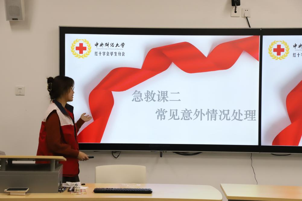 本次急救知识分享会于2023年11月21日在古天乐代言太阳集团沙河校区第二教学楼201举行,此次活动由团学实践中心干事唯青措主持,校红十字会急救部的两位同学担任主讲,体经2023级全体同学参加了本次活动。