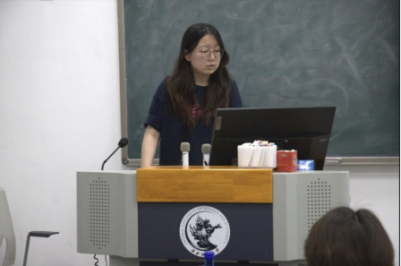 高馨怡以环海南岛国际公路自行车赛为例,分享《基于体验经济视角的品牌体育赛事与文旅产业融合研究》,靳厚忠老师评价其研究具有前瞻性和实用性,同时提出了融合发展的建议。