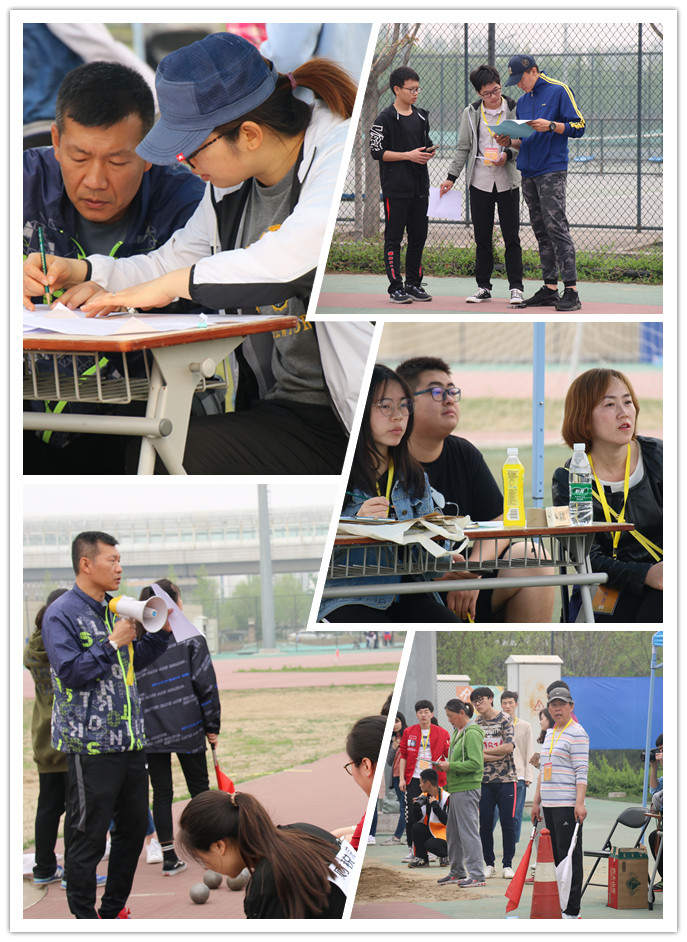 在比赛的两天中,他们虽然不是运动场上出现最早的身影,但却是坚持最久的身影。他们在比赛前需要认真准备器材、布置场地,保证比赛的正常进行;比赛中,他们需要全神贯注,认真组织,保证每项赛事正常进行;比赛后,他们需要检查器材,清理场地,保证第二天的比赛安全进行。他们承担着运动会中最多地工作,他们是运动会中出现在食堂最晚的身影。