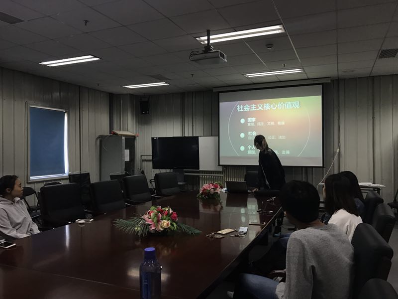 9月28日上午9点,公司太阳成集团tyc122cc16-2班于体育馆二层会议室召开“社会主义核心价值观”主题班会, “专题学习+交流讨论” 的开展形式激发师生对于社会主义核心价值观中关于“爱国”、“敬业”关键词的热烈讨论。此次班会由16-2班班长刘姝鑫同学与团支部书记杨文蓉同学共同组织开展,出席本次班会的有体育经济管理公司公司党委书记、体经16-2班班主任林琼老师、体经16-2班辅导员胡庆老师以及16-2班全体同学。