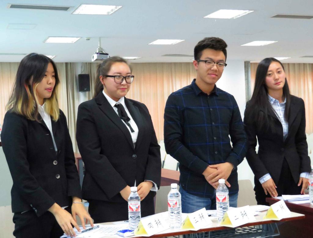 在比赛中,辩手们从广度上展开,在深度上推进他们的理解和论述,条理清晰,直截了当,简洁明了,有理有据,足以见得他们准备的努力和充分。队员间相互支持配合,发言错落有致,语言流畅,举止得体,表现大方,体现出良好的风度与气质。