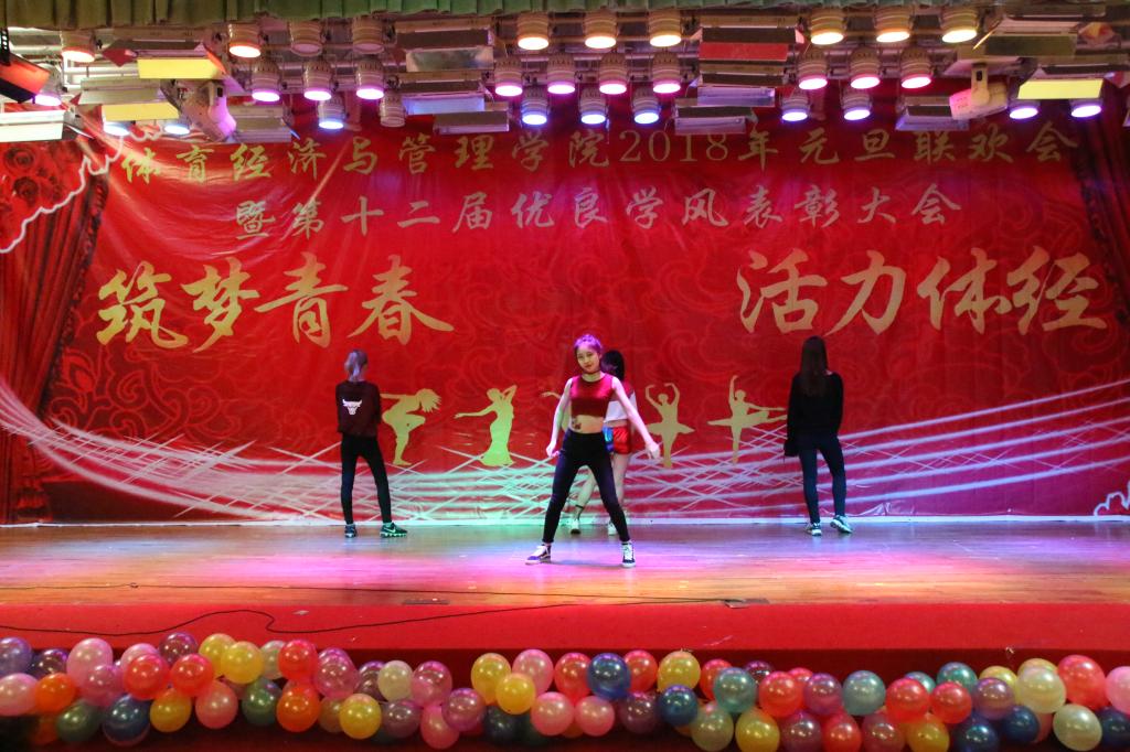 美好的时光总是匆匆而过,而我却只想给你“宠爱”,联欢会在2016级1班集体带来的歌舞表演《青春宠爱》中圆满落幕。“酉鸡隐退,鼎故辞旧,春秋又寒暑,旧事已婆娑;戌狗拂晨,吐故纳新,龙马出澄渊,浩气养乾坤;我中央财大,如龙腾天潜渊,吐纳川海;我体经学子,似马逐日追风,一任奔驰”。