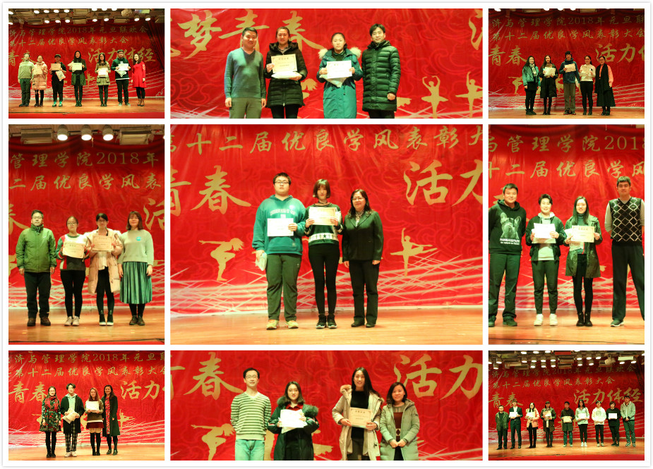 在节目表演过程中,联欢会还设立了三个颁奖环节,为在公司第十二优良学风表彰中获奖的学子颁发奖状和奖品。优良学风表彰旨在表彰先进,引领员工树立更高的学习目标,鼓励全院师生进一步提升学风建设,浓厚学术氛围,丰硕科研成果,提高员工素质。希望受到表彰的先进集体和个人戒骄戒躁,再接再厉,再创佳绩。希望全院各班级和全体员工,以受表彰的集体和个人为榜样,团结奋斗、积极进取、争先创优,涌现出更多的先进集体和个人。同时,联欢会还设立了三个抽奖环节,马楷翔同学、王曼茜同学,张丛杉老师等6名师生成为晚会的幸运儿,抽中了节目组精心准备地新年福袋。