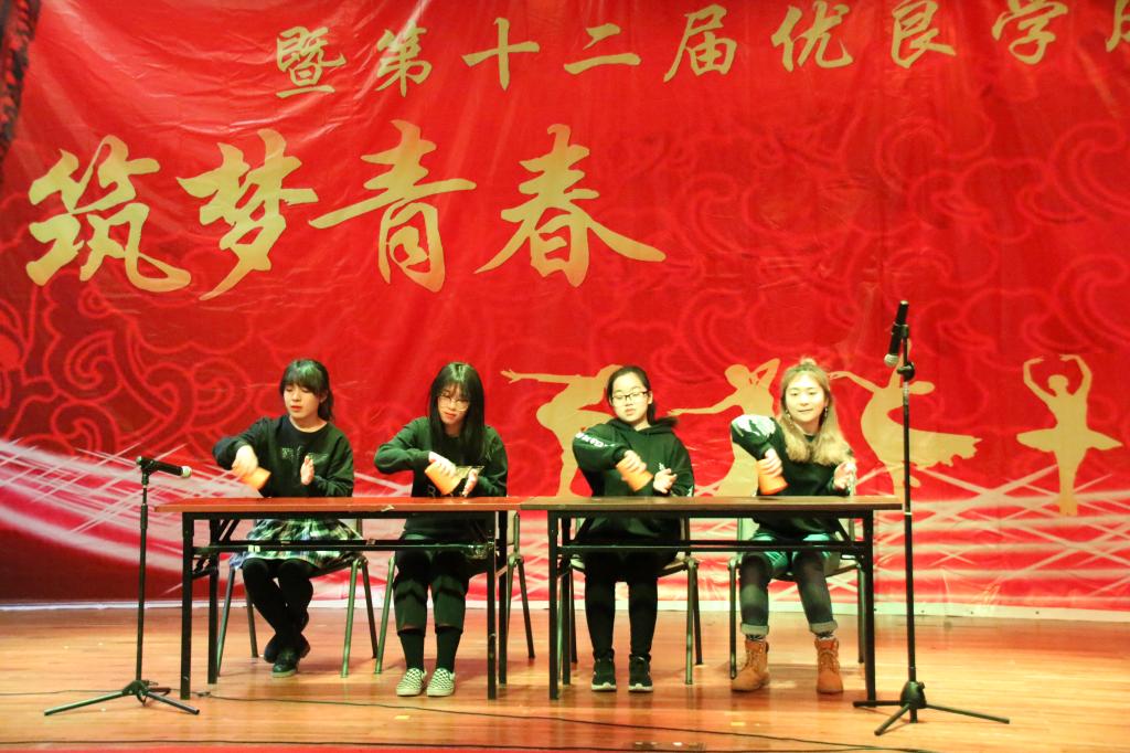人生路上,我们不甘平凡;披荆斩棘,我们注定不同。校园十佳歌手苏白提与公司王钧洁同学带来歌曲串烧《追梦者》,苏白提的柔情与王钧洁有态度的rap碰撞结合,馨心淡雅与铿镪顿挫交织融合。夏花绚烂、秋叶静美都是一年时光美好的见证,在徐琛同学的伴奏下,刘子轩等3位女生动情朗诵诗歌《生如夏花》。年轻的活力除了跳跃地舞蹈,当然还可以用另一种形式来表达,灵敏的动作,铿锵的击声,转动,交换,击掌,李澄芳等4位同学配合默契,利用杯子、桌面和手掌的碰撞演绎地《杯子舞》节奏欢快,动感十足。龙马新声气势恢宏,苏情悦等7位同学为我们带来了歌曲串烧《体经好声音》;财经学子多才多艺,未央舞社和文传公司员工用街舞《light it up》表达了对公司师生的美好祝福。