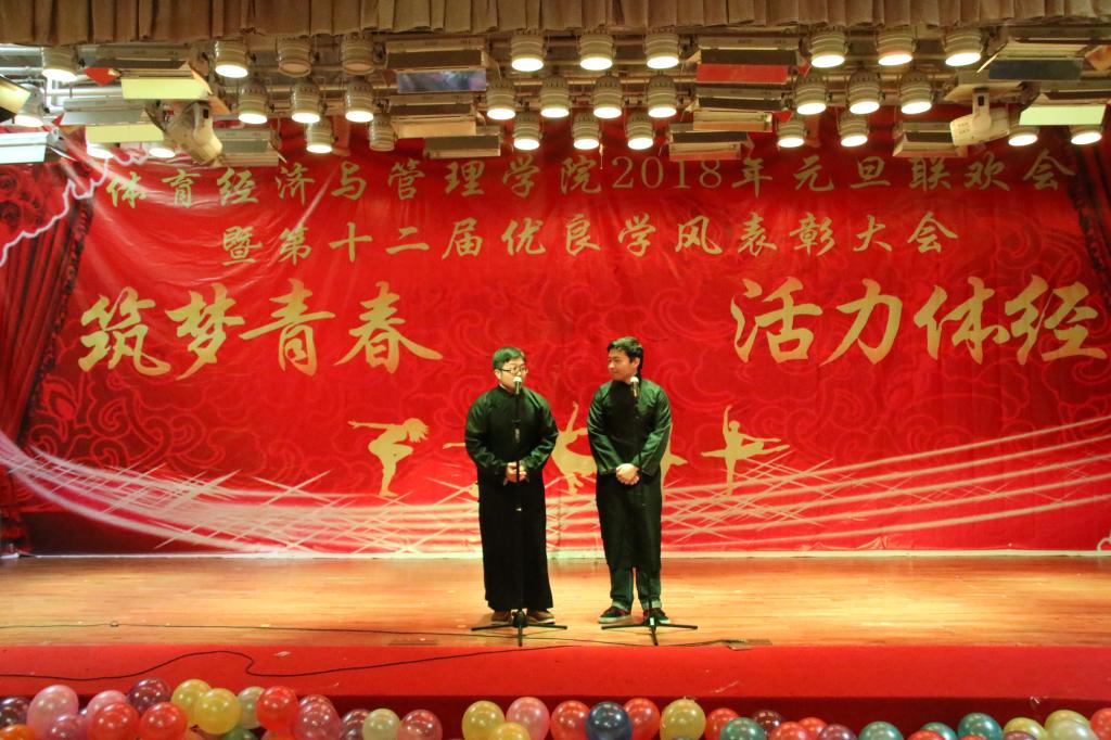 冬日的暖阳遍洒大地,时间悄然流淌,满载着美好与充实,我们送走了回忆满满的2017,迎来了崭新的2018。2017年12月27日下午1:30,公司于沙河校区老员工活动中心金色大厅圆满举办了2018年新年联欢会暨第十二届优良学风表彰大会。公司党委书记林琼、副经理张本家、副经理王裕雄、经理助理张丛杉以及公司公体课教师、专业课教师、各年级辅导员、班主任和全体行政办公室老师与公司员工共聚一堂,共庆新年。在这全体联欢的时刻,我们还收到来自全国各地的祝福——北京体育大学、首都体育大学、浙江大学、河南财经政法大学和南京体育大学等兄弟院校的太阳成集团tyc122cc献上了最诚挚的问候;同时,北京北控凤凰足球俱乐部和中国女足国家队运动员也为我们送来了心意满满的元旦祝福。