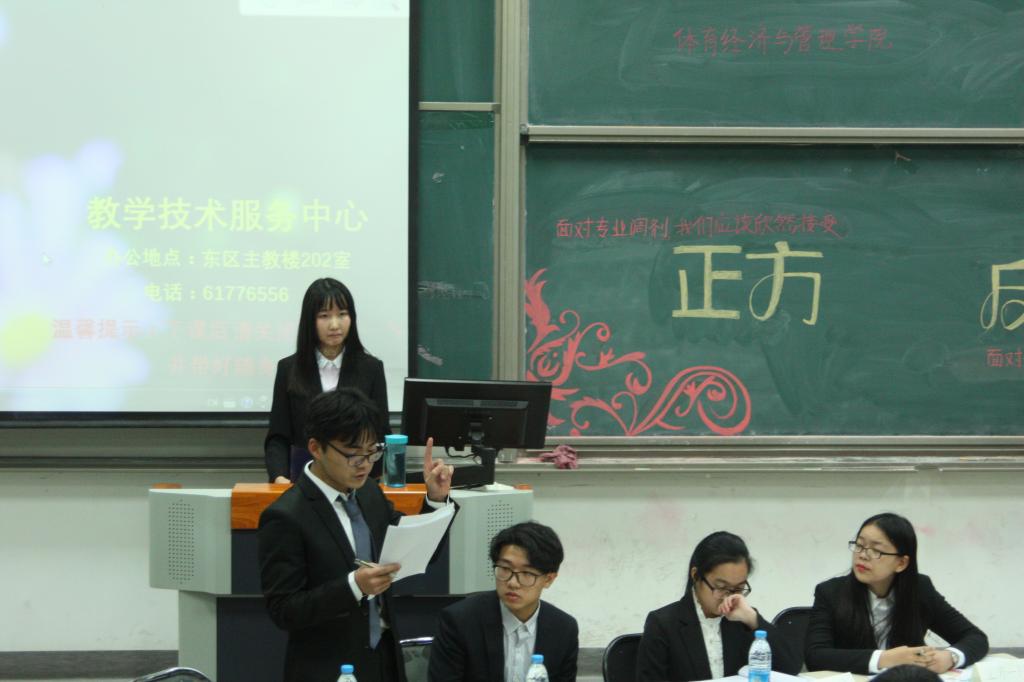 2017年11月30日下午,公司于沙河校区东区主教109教室顺利举办第三届“新生杯”辩论赛决赛。经过前期将近一个月的初赛车轮战,“我说得对”队与“红鲤鱼与绿鲤鱼”队脱颖而出,进入总决赛进行终极对战。本次总决赛辩题为“面对专业调剂,我们应当欣然接受,还是力争改变”。公司党委书记林琼教授,2017级1班班主任陈绮文老师、2017级新生辅导员张振磊老师以及公司明思阁辩论队队长苏昊同学出席并担任比赛评委。