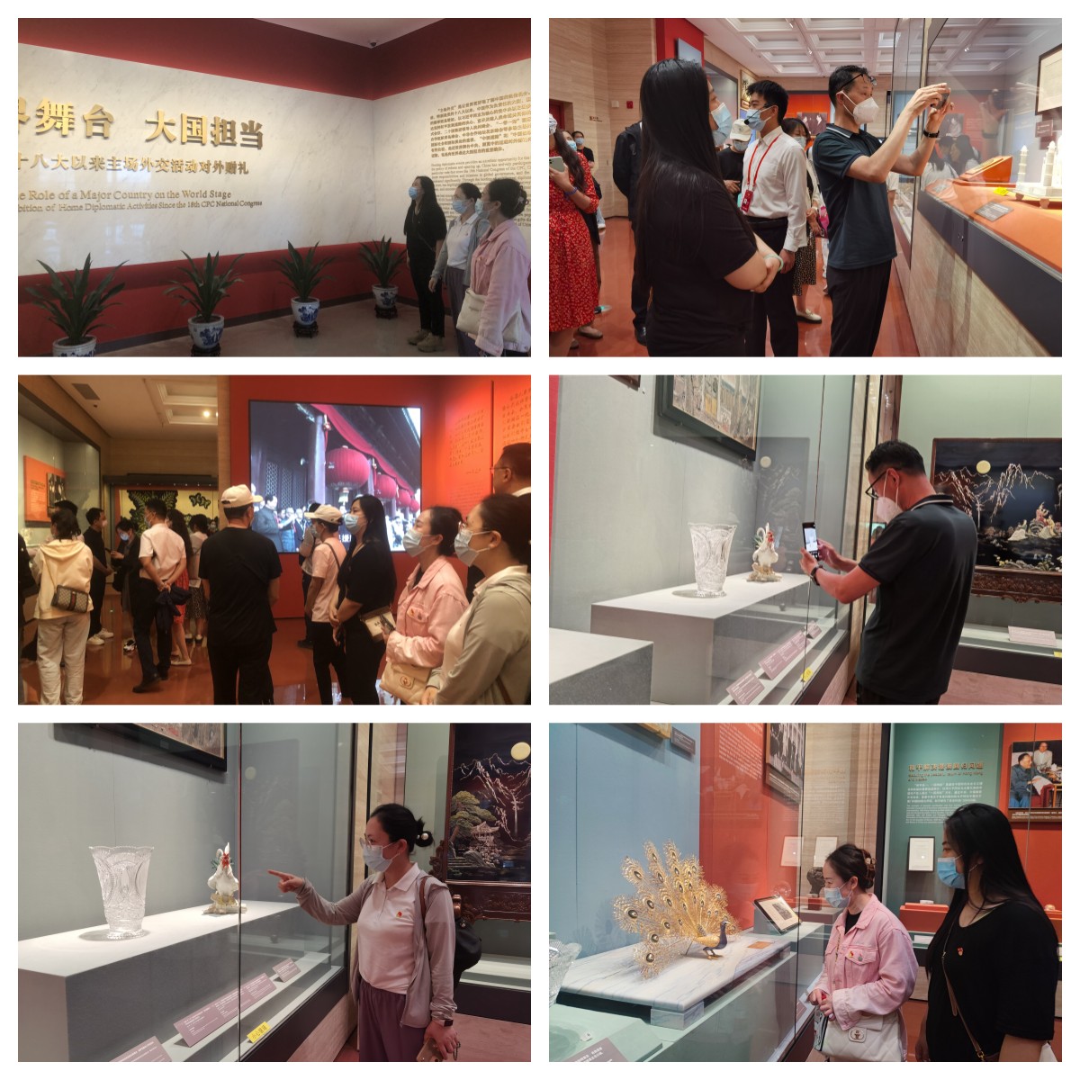 为深入贯彻党的二十大精神,扎实开展学习贯彻习近平新时代中国特色社会主义思想主题教育,行政教工党支部于5月30日下午组织党员前往中央礼品文物管理中心开展参观《友好往来 命运与共—党和国家领导人外交活动礼品展》党日活动。
