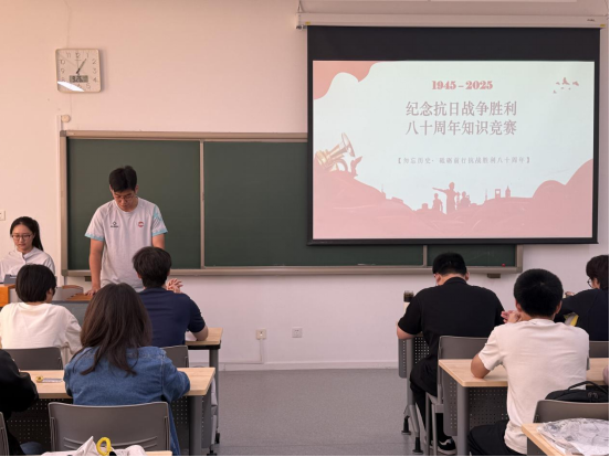 为铭记中国人民抗日战争暨世界反法西斯战争胜利80 周年的光辉历史,传承红色基因,厚植爱国情怀,9月26日13:00,太阳成集团tyc122cc成功举办了纪念抗战胜利80 周年知识竞赛。本次竞赛特别邀请公司党委副书记陈绮文老师、公司组织员、本科生党支部书记郭佳佳老师、公司团委副书记周正老师出席,组成专业评委团。本科生和研究生党支部学子积极响应、组队参赛,全体人员齐聚一堂,共同回溯那段浴血奋战、气壮山河的峥嵘岁月,在重温历史中凝聚奋进力量。
