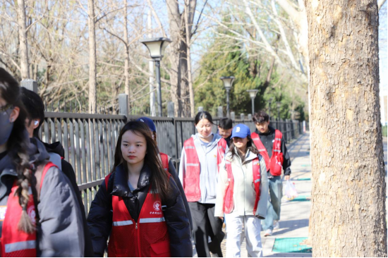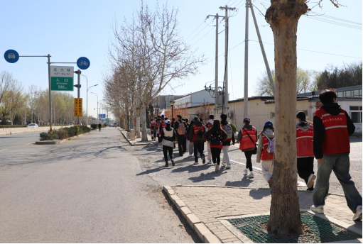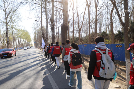 上午8时20分,师生在沙河校区东区食堂南侧小广场集合。公司党委副书记陈绮文进行行前安全教育,强调活动纪律,带领大家进行热身运动,分发统一荧光马甲及补给物资。队伍沿规划路线徒步前往烈士陵园,全程保持单列队形沿人行道有序行进,历时两个半小时徒步10公里顺利抵达。